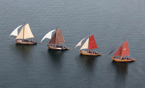 Traditional fishing boats sail out...