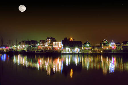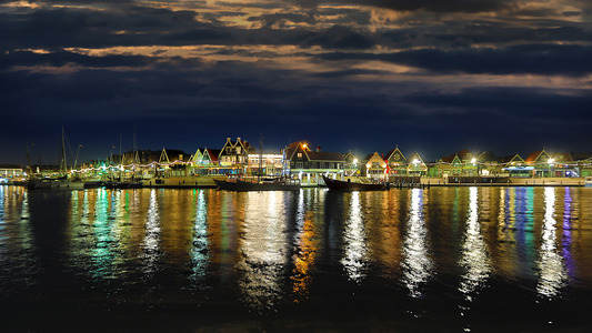 Harbour in Volendam by night - The...
