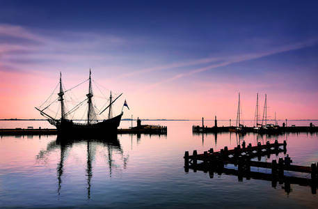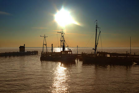 Sunrise in the fishing harbour of...