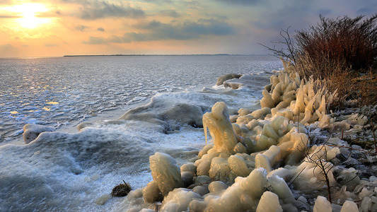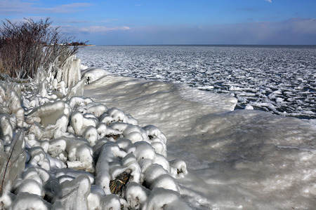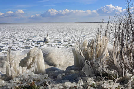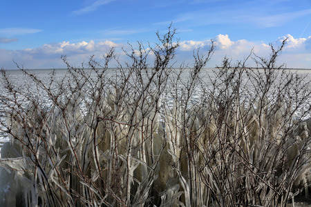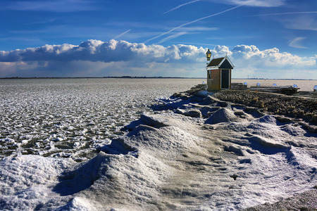 Frozen "Markermeer" at port dike...