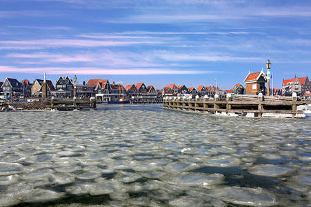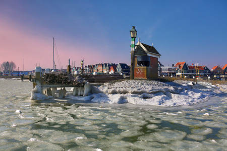 Harbour Volendam in winter time -...