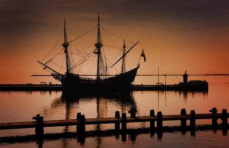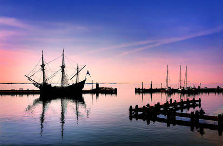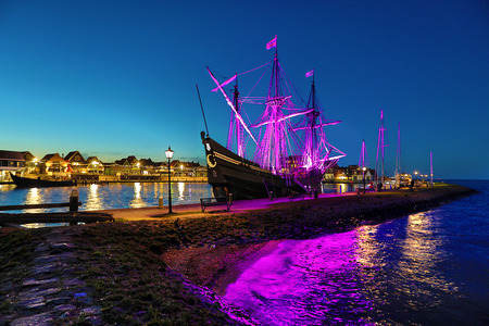 Harbour in Volendam in backlight -...