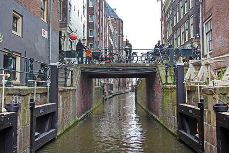 Typical Amsterdam bridge over one...
