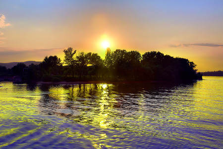 Sunset over the Danube River -...