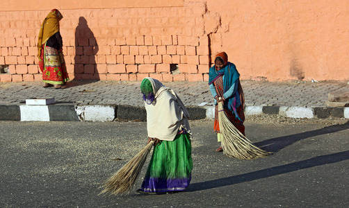 Female city workers clean the...