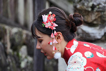 Hair decoration Japanese woman in...