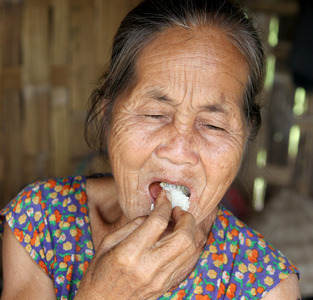 Laos woman eating rice