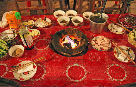 Laos man and wife eating