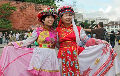 Locals in traditional clothing Lijang