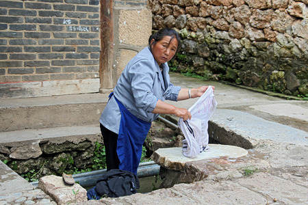Washing woman in street Baisha