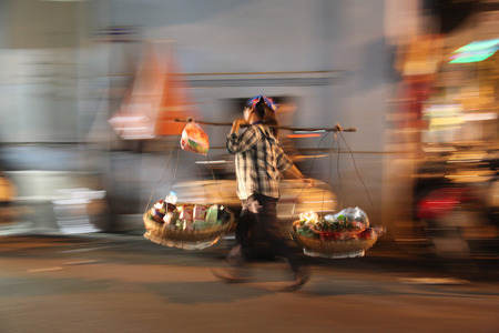 Rushing Vietnamese woman in Hanoi...