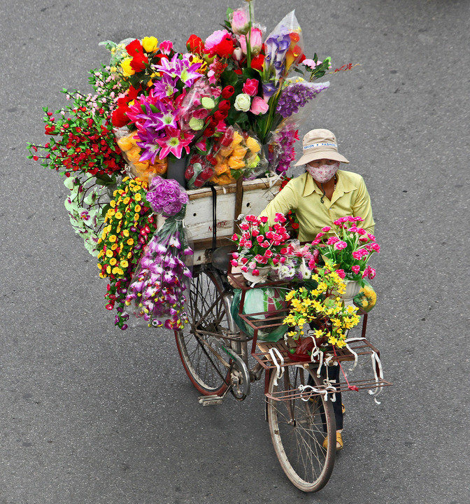 Selling flowers from the bike in...