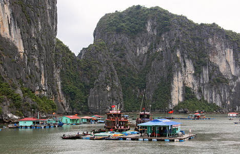 Floating village Halong Bay -...