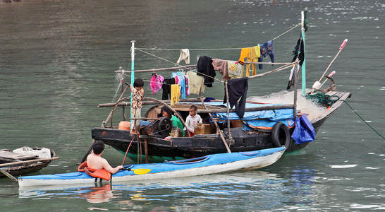 Fishermen in Halong Bay - North...