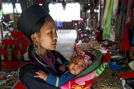 Hmong mother with baby in Sapa -...