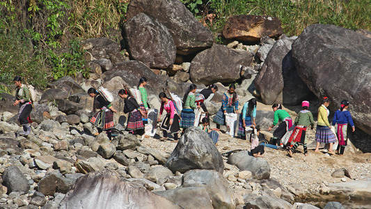 Hmong Woman walking to Ma Cha...