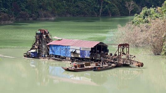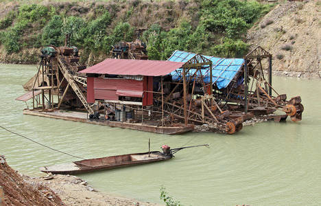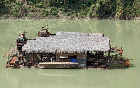 Gold digging in Mekong River North...