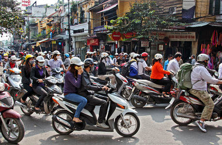Motorcycles and scarfs in Hanoi -...