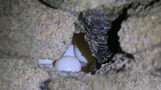 Egg laying turtles on the beach of...