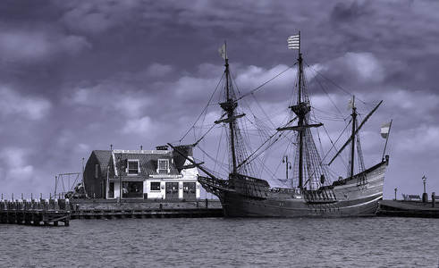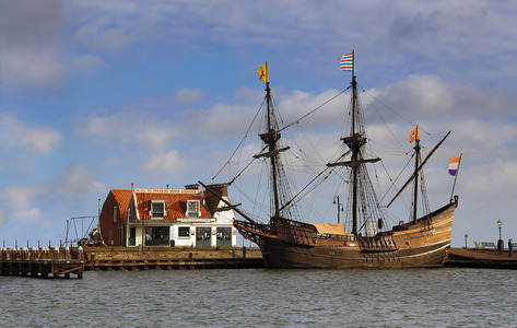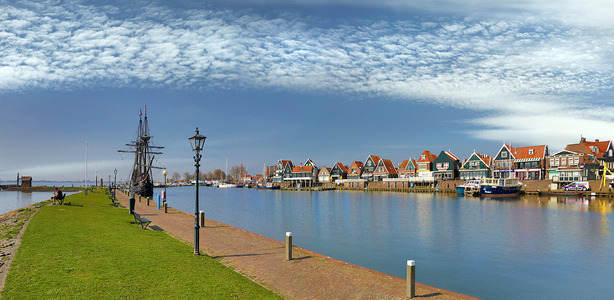 Harbour of Volendam with VOC Ship...