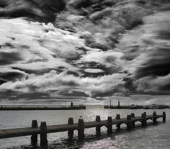 Harbor Pier with fog horn in...