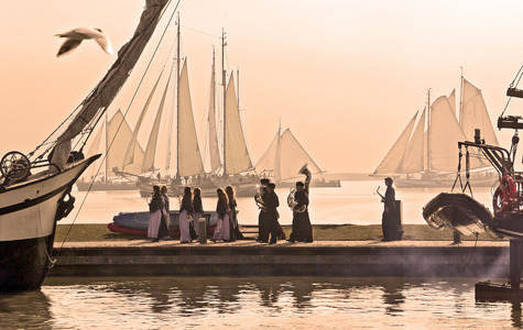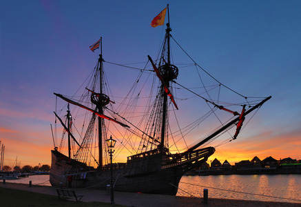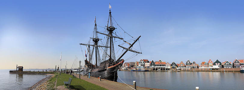 Volendam harbour with VOC ship de...