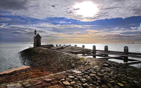 Harbour in back light - Volendam -...