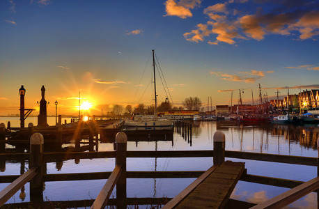 Sunrise in de harbour in Volendam...