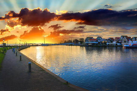 Sunset in Volendam harbour - The...