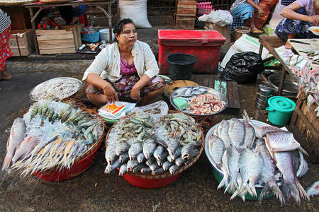 Myanmar - Yangon - market woman